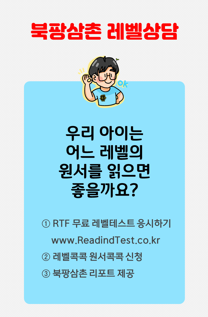 (북팡은 학원·교육기관이 아니므로 아이디 사용법 및 학습 상담은 제공하지 않습니다. 단, 북팡삼촌 레벨콕콕 원서콕콕 신청 시 레벨 진단 보고서 제공)