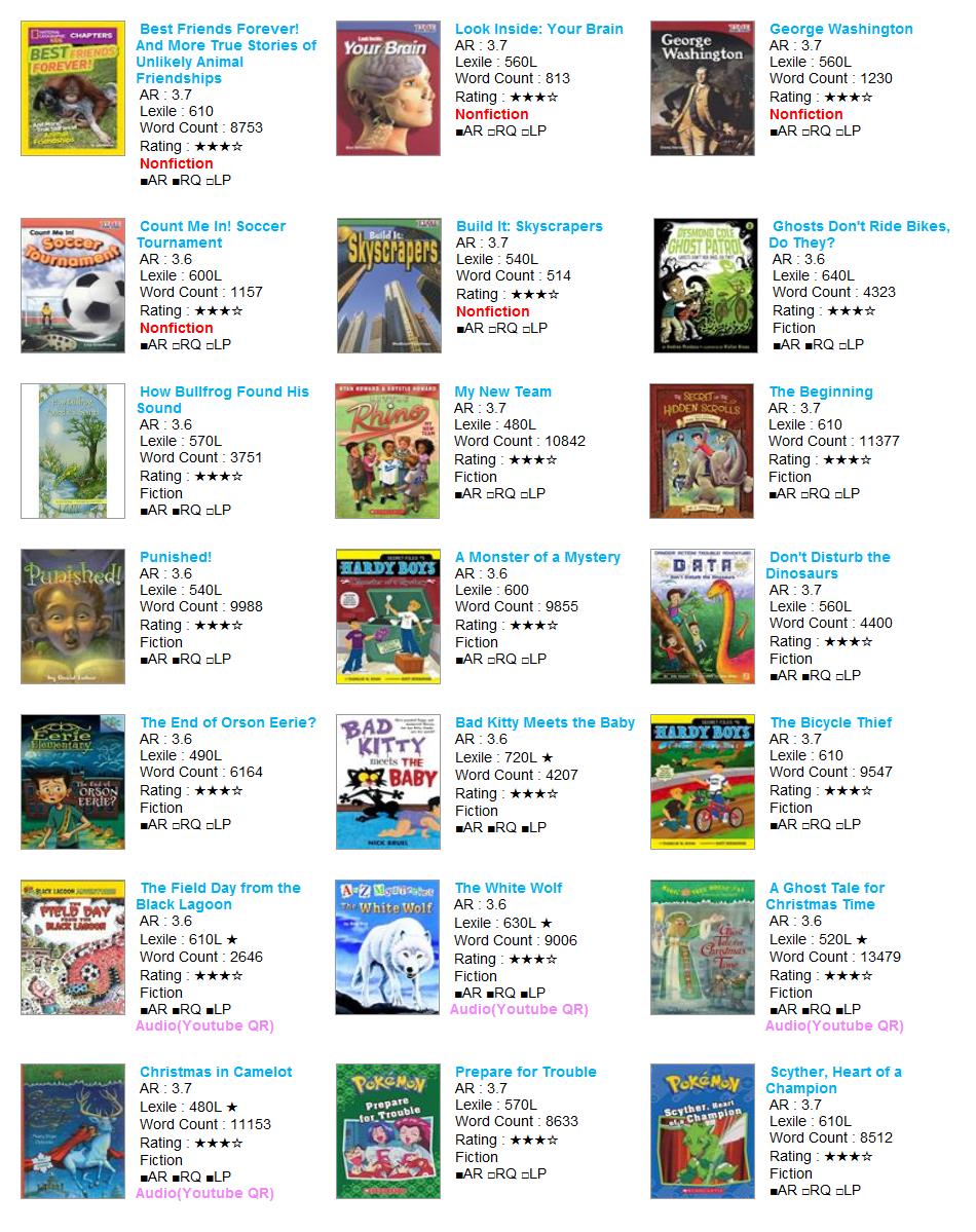 - HOME > 원서대여 > 3점대 스페셜 > 3점대 챕터&그래픽노블 미중복 A > [대여] AR 3.6~3.7레벨 21권 (0059-C21-A03) #챕터북 #초등고학년 #남여공용추천 #논픽션 #픽션 #포켓몬 #타임포키즈 #판타지