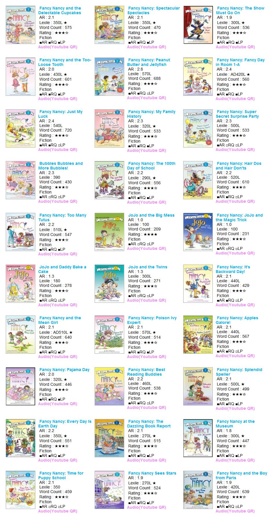 | 2.1 | 270L ★ | Fancy Nancy: The Dazzling Book Report | O'Connor, Jane | 130288 | 9612 | LG | 0.5 | Fiction | RP | RV | VP | 3.5 | 515 | 130288-0086 | |