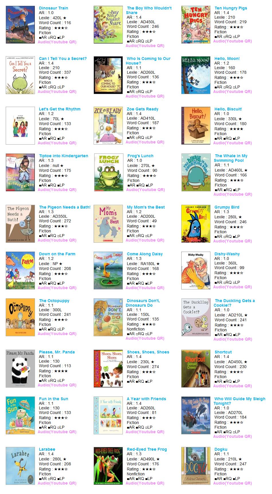 | AR Level | Lexile | Title | Author | AR No | RQ No | IL | Pts | Fiction | RP | RV | VP | LS | Rating | Word | Barcode |
