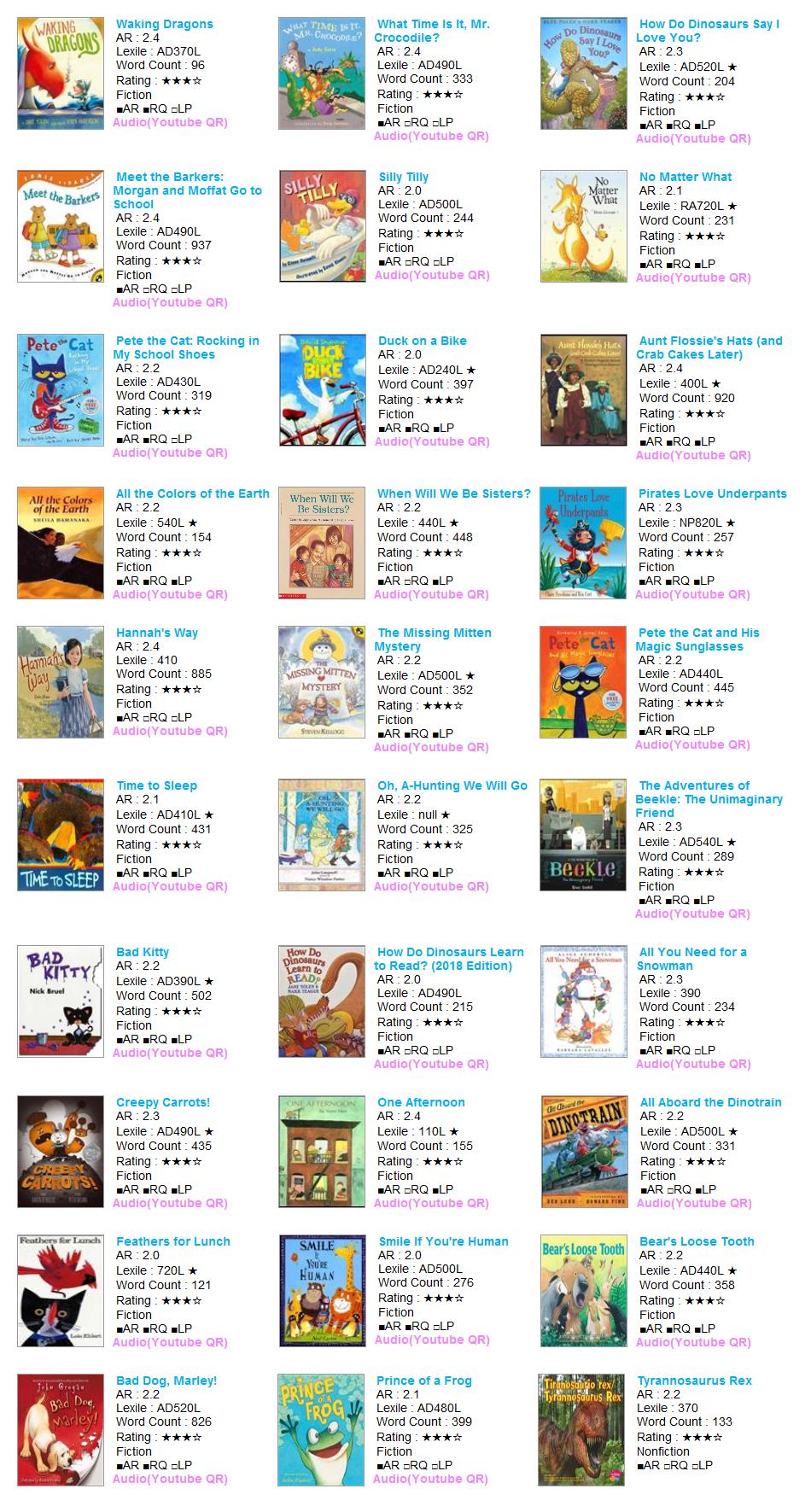 | 2.2 | AD430L | Pete the Cat: Rocking in My School Shoes | Litwin, Eric | 154850 | 22693 | LG | 0.5 | Fiction | RP | RV | 3.5 | 319 | 154850-0100 | ||