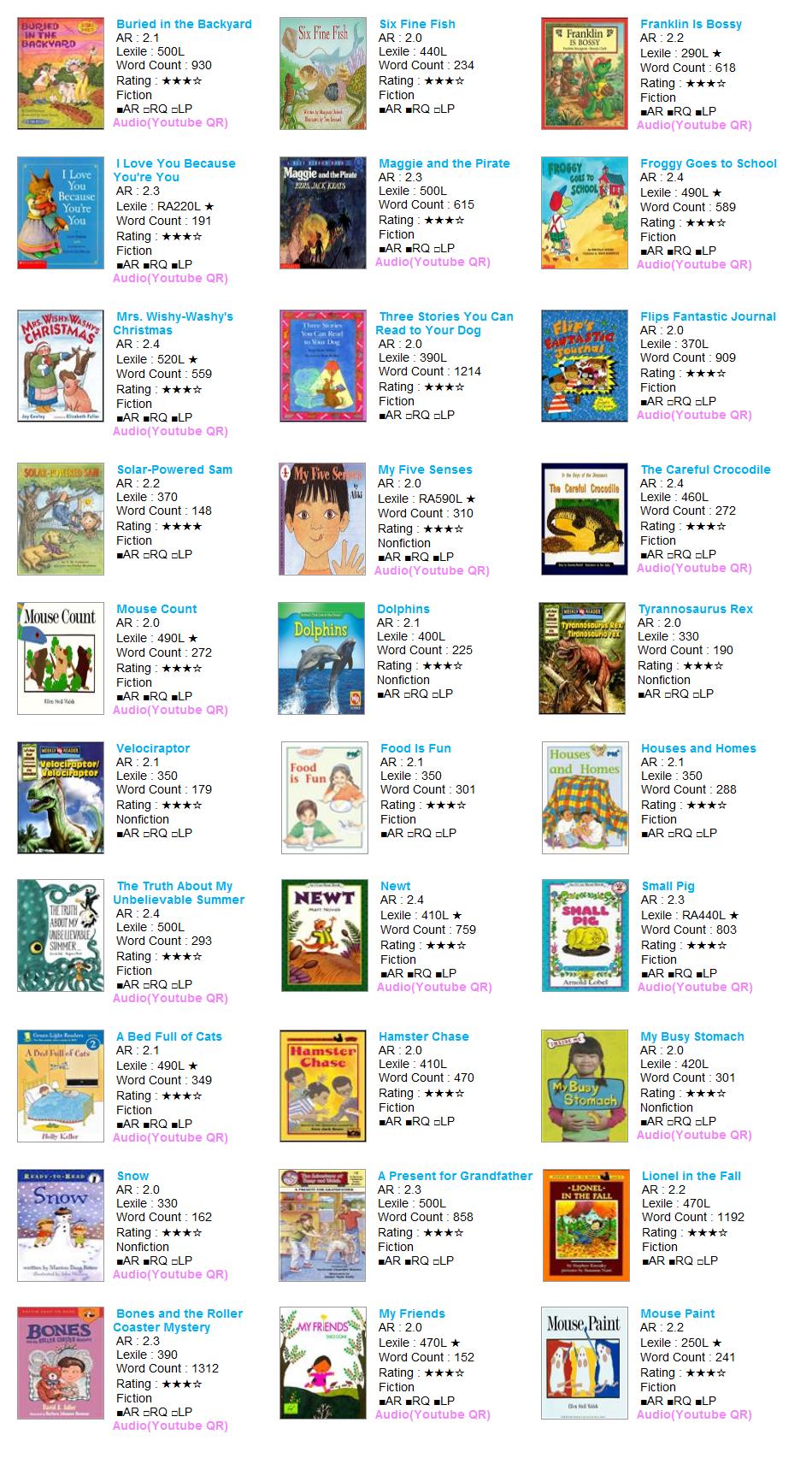 AR LevelLexileTitleAuthorAR NoRQ NoILPointFictionRPRVVPLSRatingWordBarcode