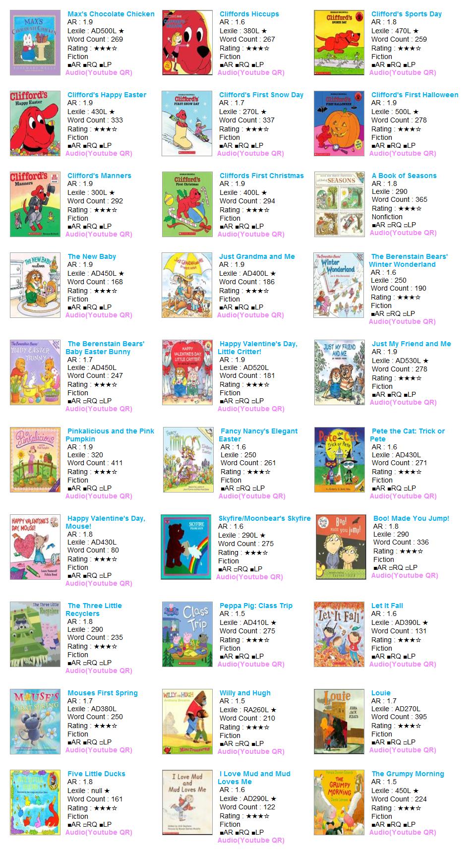AR LevelLexileTitleAuthorAR NoRQ NoILPointFictionRPRVVPLSRatingWordBarcode