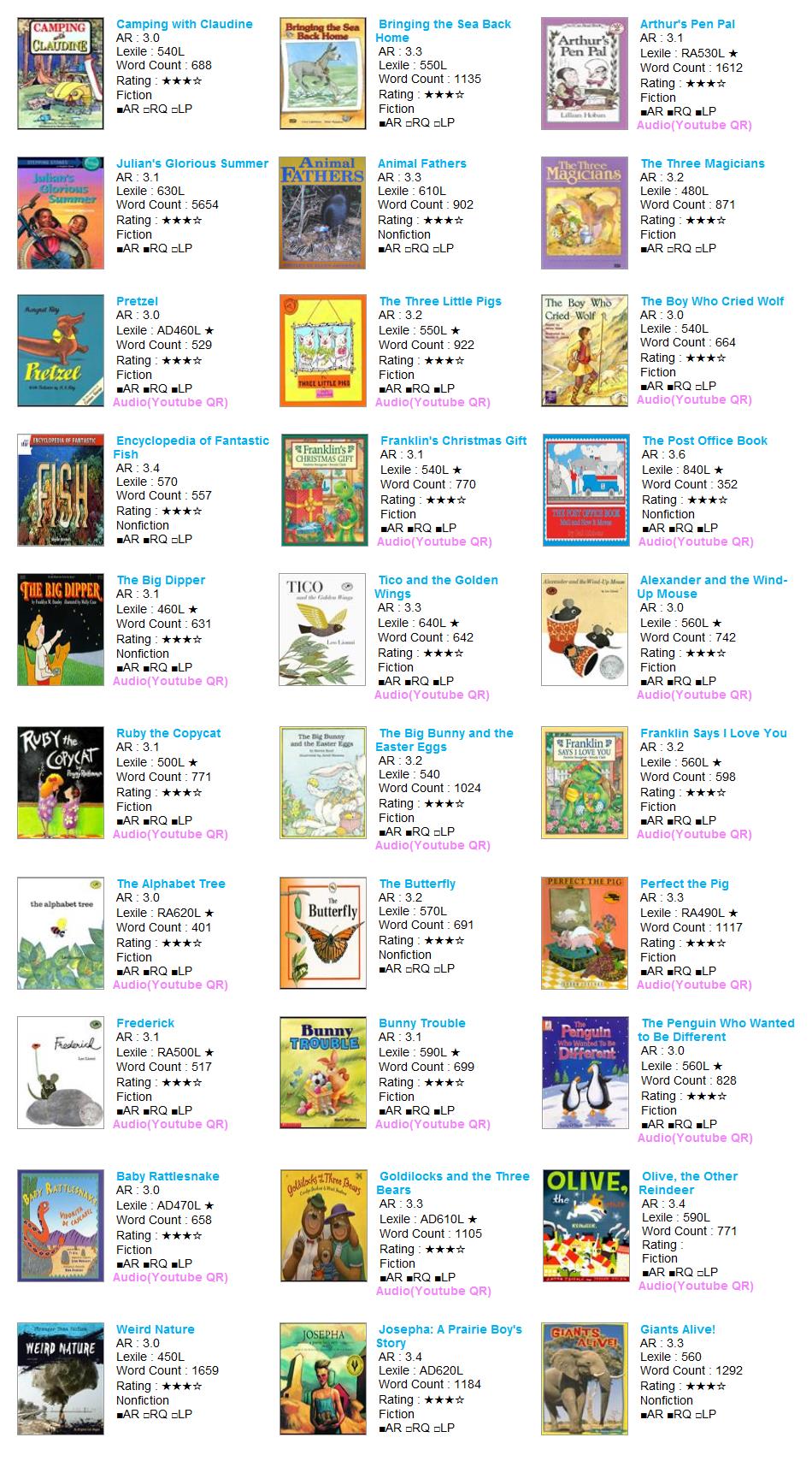 AR LevelLexileTitleAuthorAR NoRQ NoILPointFictionRPRVVPLSRatingWordBarcode