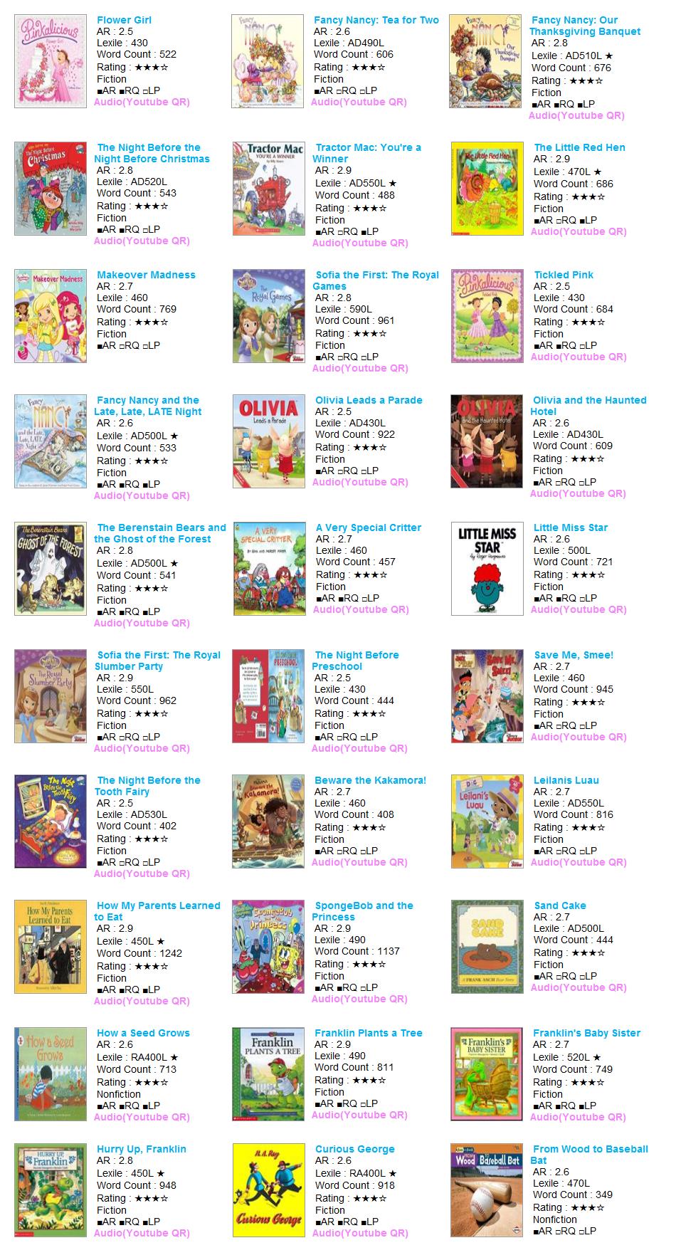 AR LevelLexileTitleAuthorAR NoRQ NoILPointFictionRPRVVPLSRatingWordBarcode