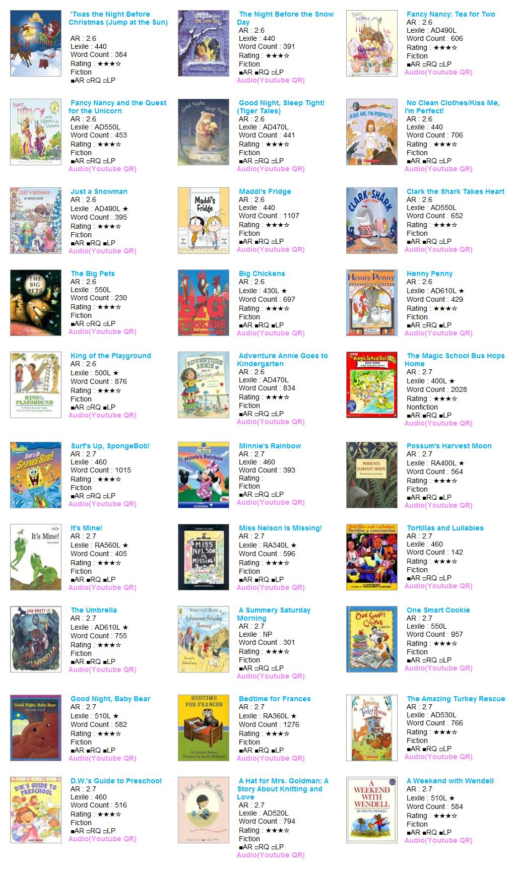 - HOME > 원서대여 > 2점대(0.2단위) 미중복 A > AR 2.6~2.7 > [대여] AR 2점대 30권 (0046-B41-A02) #픽처북 #캐릭터북 #팬시낸시 #매직스쿨버스 #리틀크리터 #디즈니 #스폰지밥