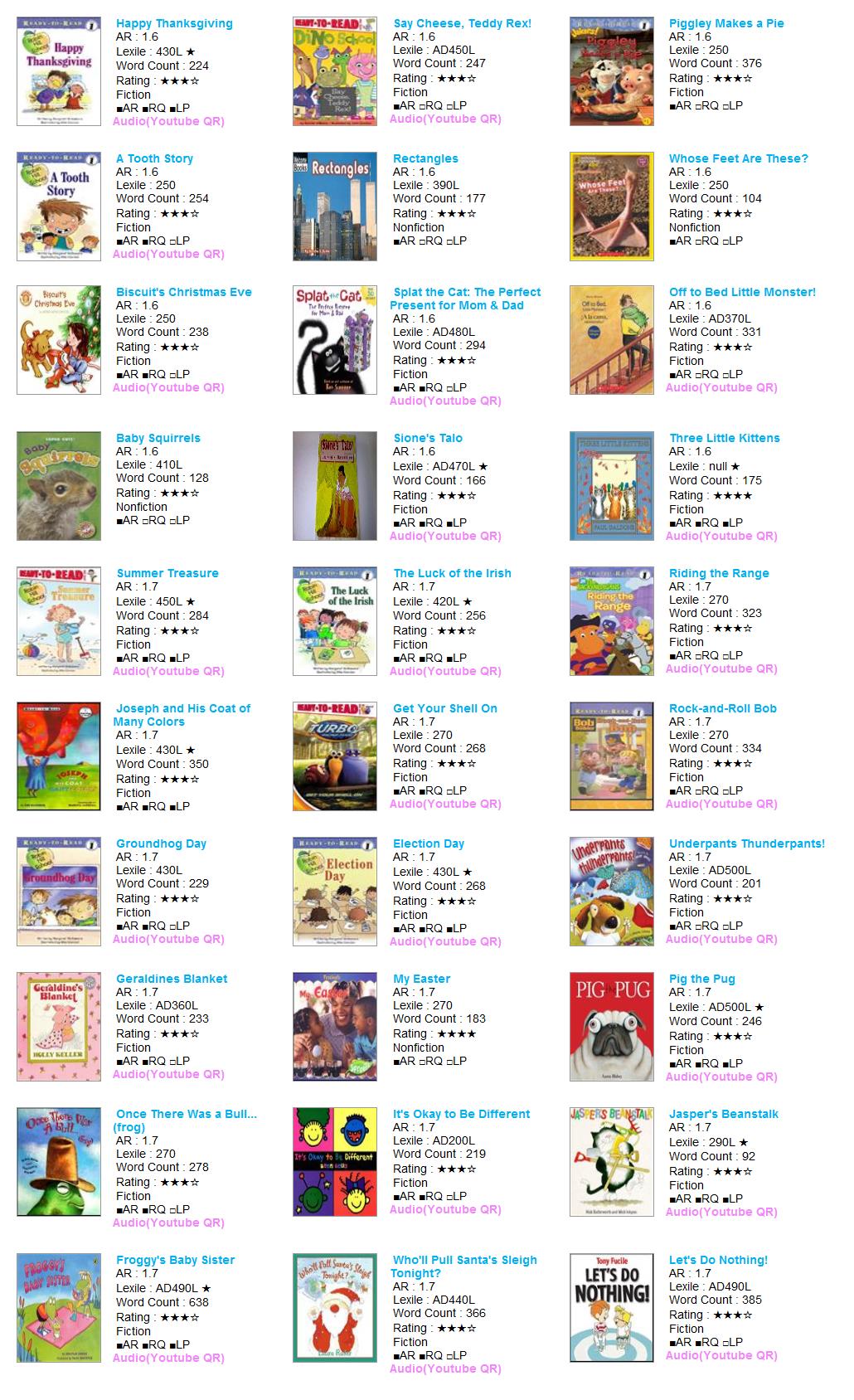 HOME > 원서대여 > 1점대(0.2단위) 미중복 D > AR 1.6~1.7 > [대여] AR 1점대 30권 (0002-B23-A01) #픽처북 #리더스북 #미니북 #논픽션4권 #레디투리드
