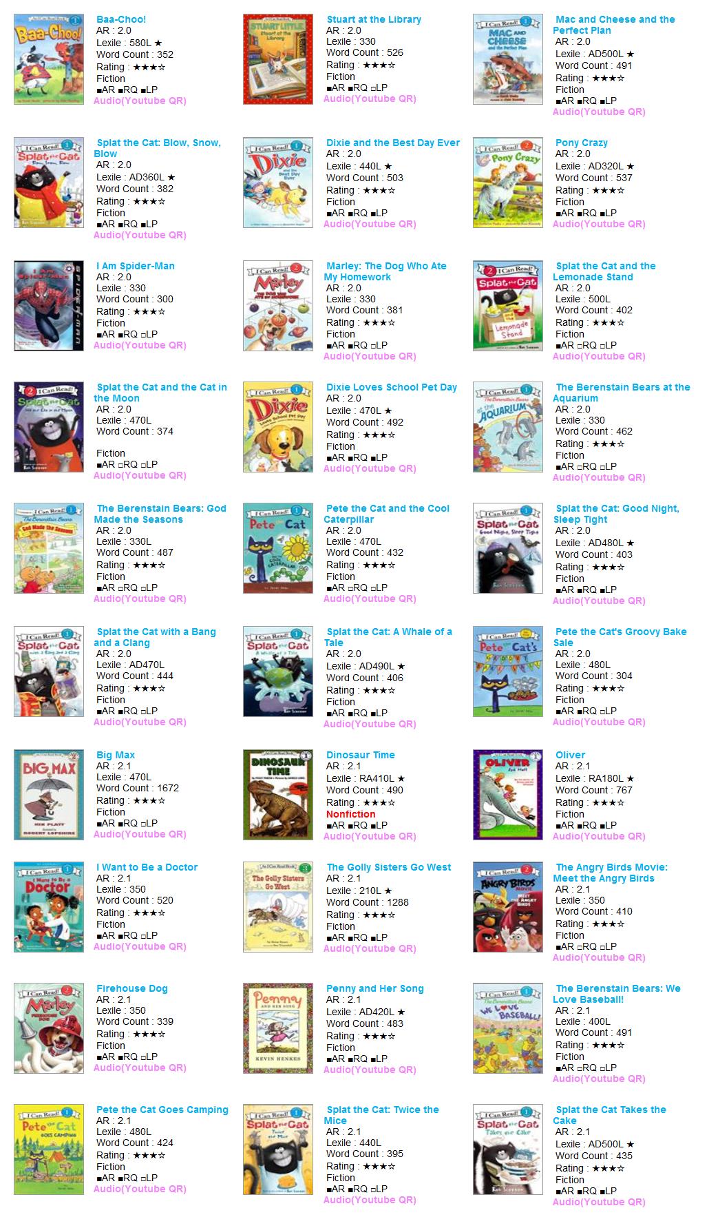 - HOME > 원서대여 > 2점대(0.2단위) 미중복 C > AR 2.0~2.1 > [대여] AR 2점대 30권 (0041-A43-A02) #리더스북 #아이캔리드 #Splat the Cat #Pete the Cat